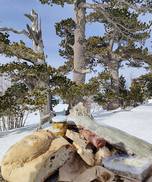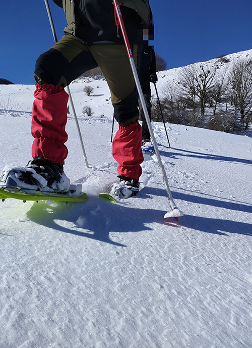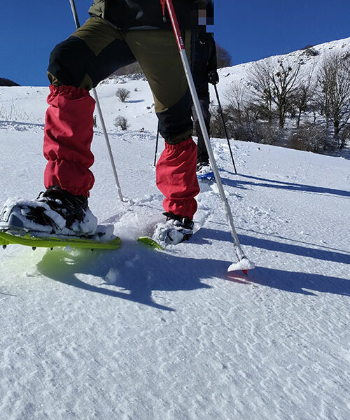 Camminare sulla neve del Pollino, indossando le racchette per affrontare i percorsi innevati e godere di scenari unici.